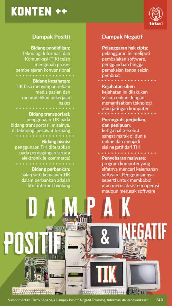 Meskipun dampak positif TIK sangat besar, kita juga harus mengakui bahwa TIK juga memiliki dampak negatif, seperti penyebaran berita palsu, perundungan siber, dan kecanduan internet. Namun, dengan kesadaran dan tindakan yang tepat, kita dapat mengatasi tantangan ini dan memaksimalkan manfaat TIK.